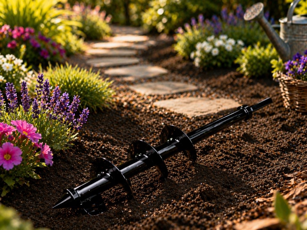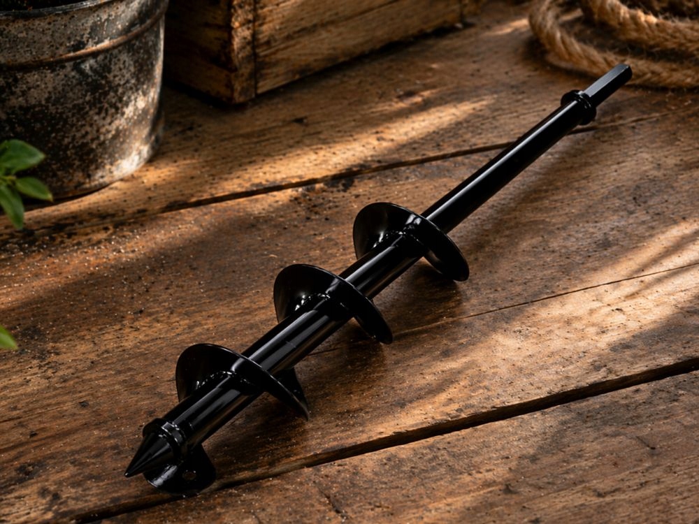 - Spiraalne kuju lihtsamaks puurimiseks – aitab puuri sujuvamalt mulda keerata ja toetab kiiremat tööprotsessi.