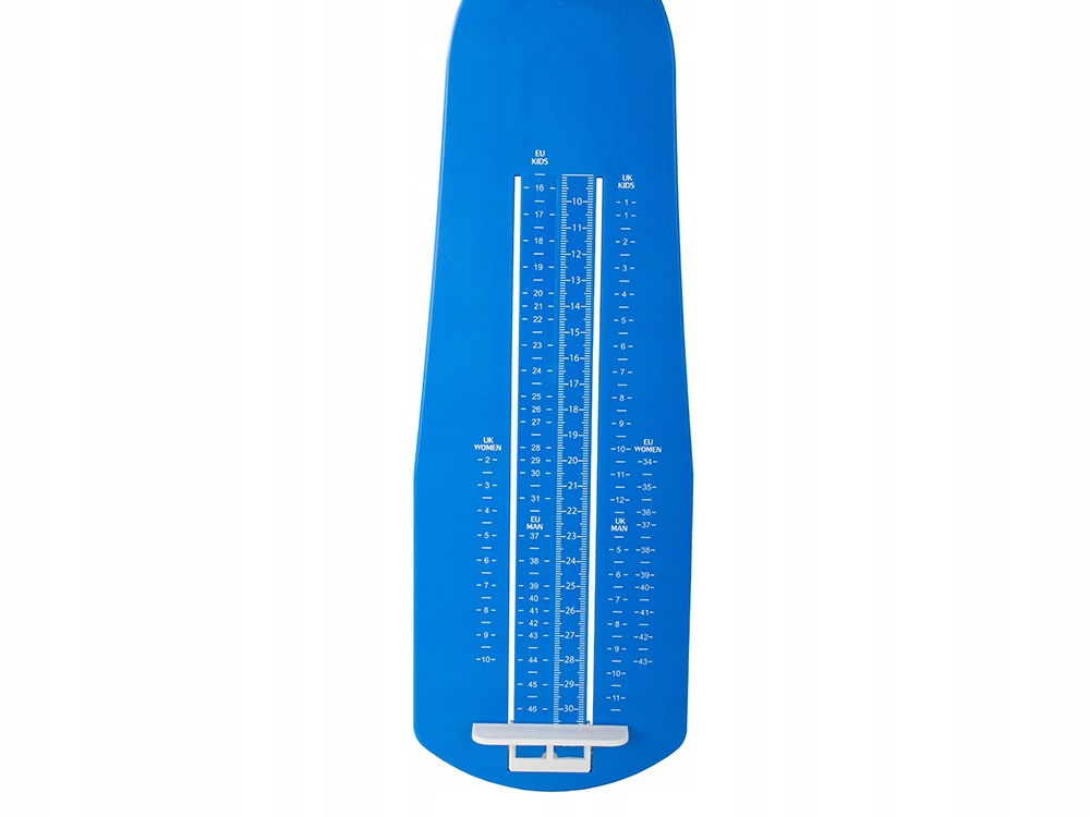 - Mõõdustikud EU, UK ja sentimeetrites – samal jalamõõtjal on mitu skaalat, mis teeb suuruse võrdlemise mugavaks (eriti siis, kui e-poes on suurused eri süsteemides).