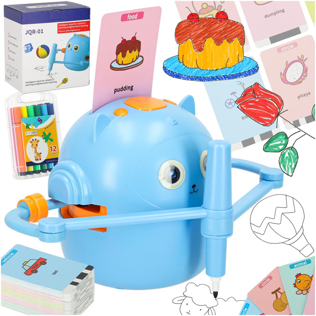 Joonistav haridusrobot ühendab mängu, loovuse ja õppimise ühte põnevasse tegevusse. See aitab lapsel jälgida, kuidas pilt samm-sammult valmib, ning innustab seejärel ise pilti värvima ja joonistamist harjutama. Lisaks toetab robot ingliskeelsete sõnade õppimist, sest komplektis olevad pildikaardid seovad joonistamise keeleõppega. See on hea valik lapsele, kes tunneb huvi piltide, värvimise ja loova tegevuse vastu.