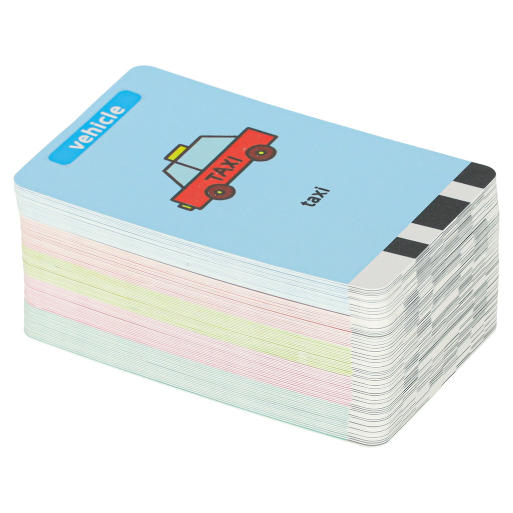 - Toetab inglise keele õppimist – pildikaartidel olevad teemad aitavad lapsel mängulisel viisil tutvuda ingliskeelsete sõnade ja mõistetega. Lihtsate piltidega kaarte saab kasutada ka eraldiseisvalt sõnavara õppimiseks.