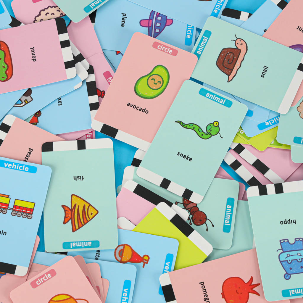 - 100 pildikaarti komplektis – valikus on erinevad teemad, näiteks loomad, toidud, kujundid, sõidukid ja taimed, mis muudavad tegevuse mitmekesiseks.
