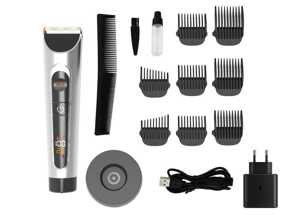 Komplekti kuulub ka juuksekamm, puhastushari, seadme hooldusõli, USB-kaabel, laadimisalus ja seinakontaktiga laadija. See toode on sertifitseeritud ja vastab kõrgetele kvaliteedistandarditele.