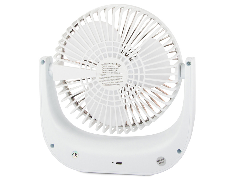 Tehnilised andmed: 4,5W võimsus, li-ion aku 3,7V, laadimisaeg umbes 3 tundi. Ventilaatori läbimõõt 16,5 cm, mõõtmed 20 cm x 21,5 cm. Komplektis laadimiskaabel ja originaalpakend.