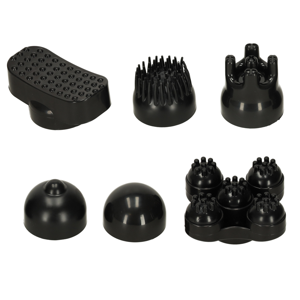 - 6 vahetatavat otsikut – komplektis on erinevad otsikud eri kehapiirkondade jaoks: shiatsu-tüüpi, suuremate pindade ning punktmassaaži tarbeks.