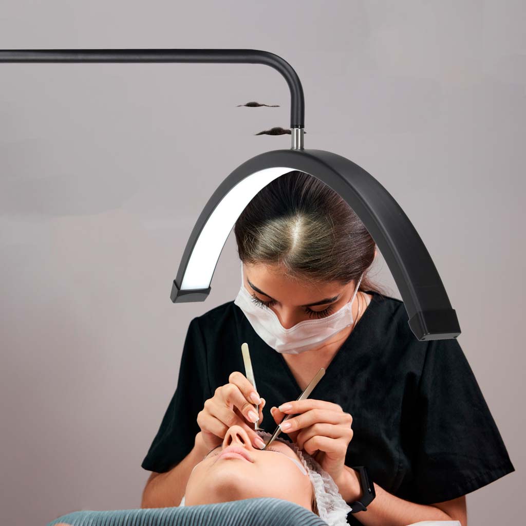 Varjudeta kaarvalgustus – 64cm pikkune valguskaar ümbritseb tööala eest ja külgedelt, vähendades varje ning tagades ühtlase ja täpse valgustuse. Sobib ripsmepikenduseks, kulmuhoolduseks, püsimeigiks ja maniküüriks.