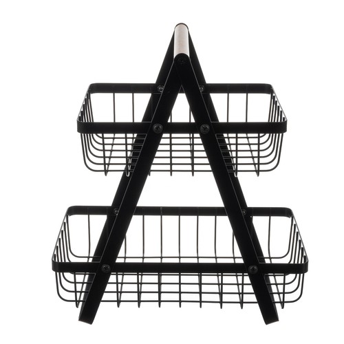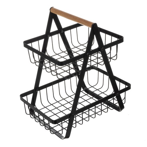 Hoia puu- ja köögiviljad korras ning alati käeulatuses stiilses kahekorruselises metallkorvis. Kahe tasapinnaga lahendus annab rohkem mahutavust, võtmata tööpinnalt liigselt ruumi. Mattmust minimalistlik disain sobitub nii loft- kui ka modernsesse kööki.