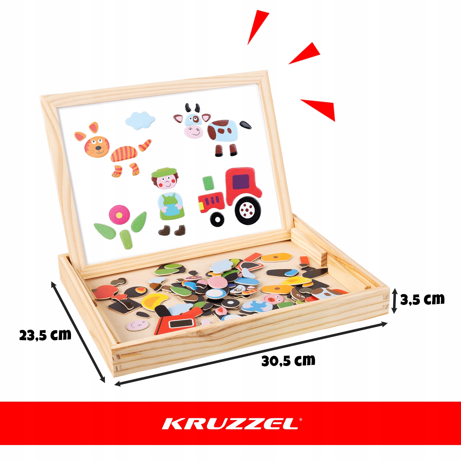 Kahepoolne 2-in-1 tahvel – üks pool on valge magnetiline kuivpühitav pind markeriga kirjutamiseks ja magnetelementide ladumiseks, teine pool must kriiditahvel