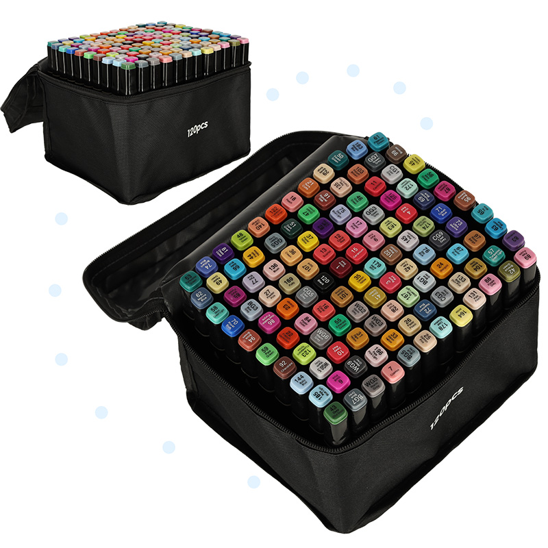 * Komplekti 120 markerit, hoiukott ja plastik-hoidik