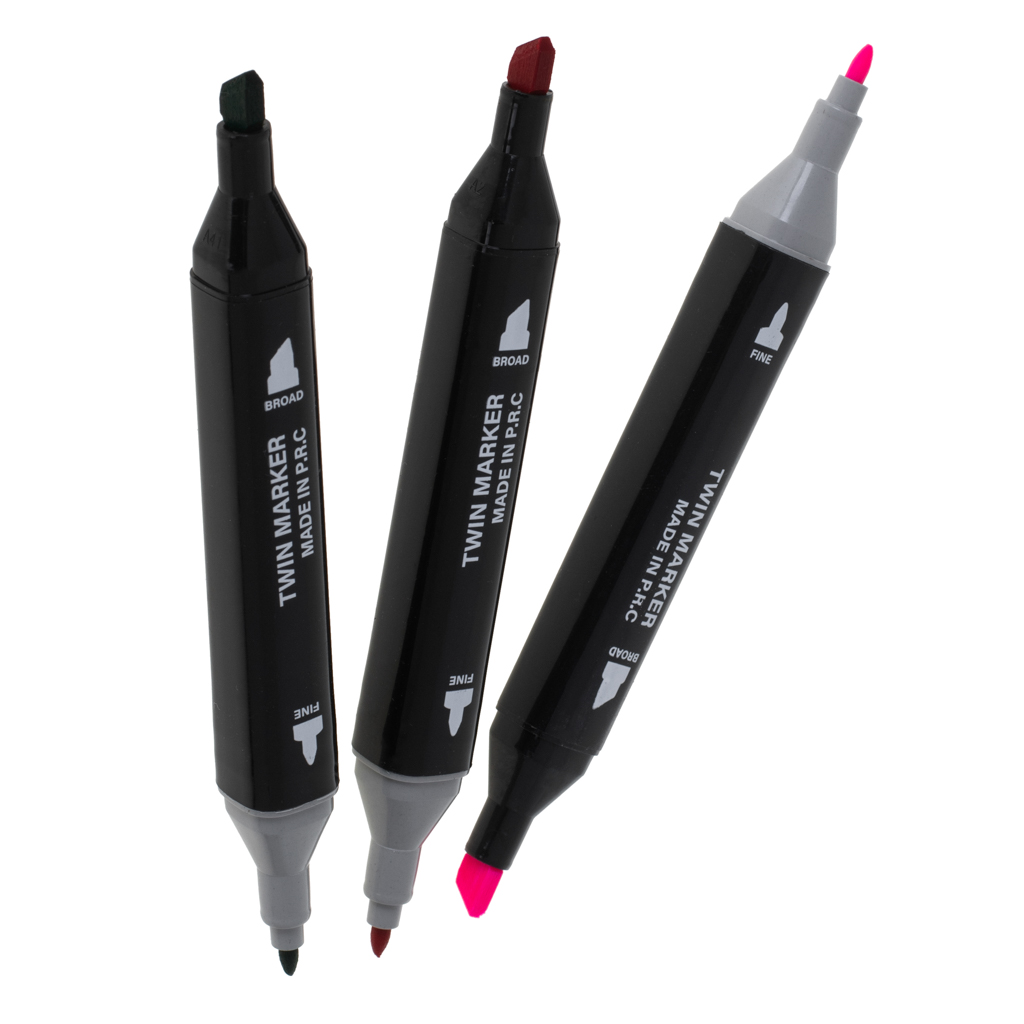 * Markerid on kahepoolsed – üks pool on laiema otsaga suuremate pindad värvimiseks ning teine peenema otsaga täpsemate joonte tegemiseks ja detailide lisamiseks