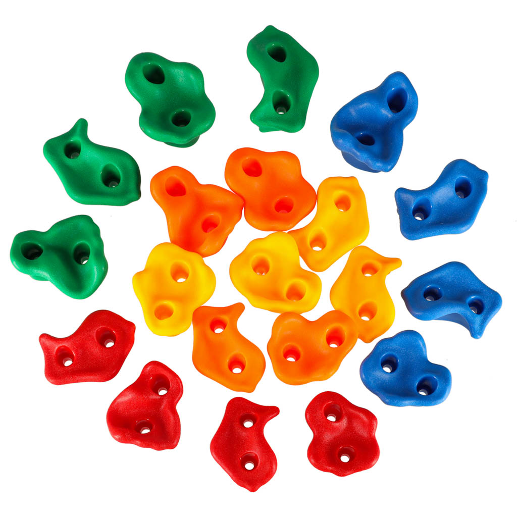 - Komplektis 20 ronimiskivi: Erinevad kujud ja värvid, mis on spetsiaalselt disainitud laste kätte ja jalgadele sobivaks.