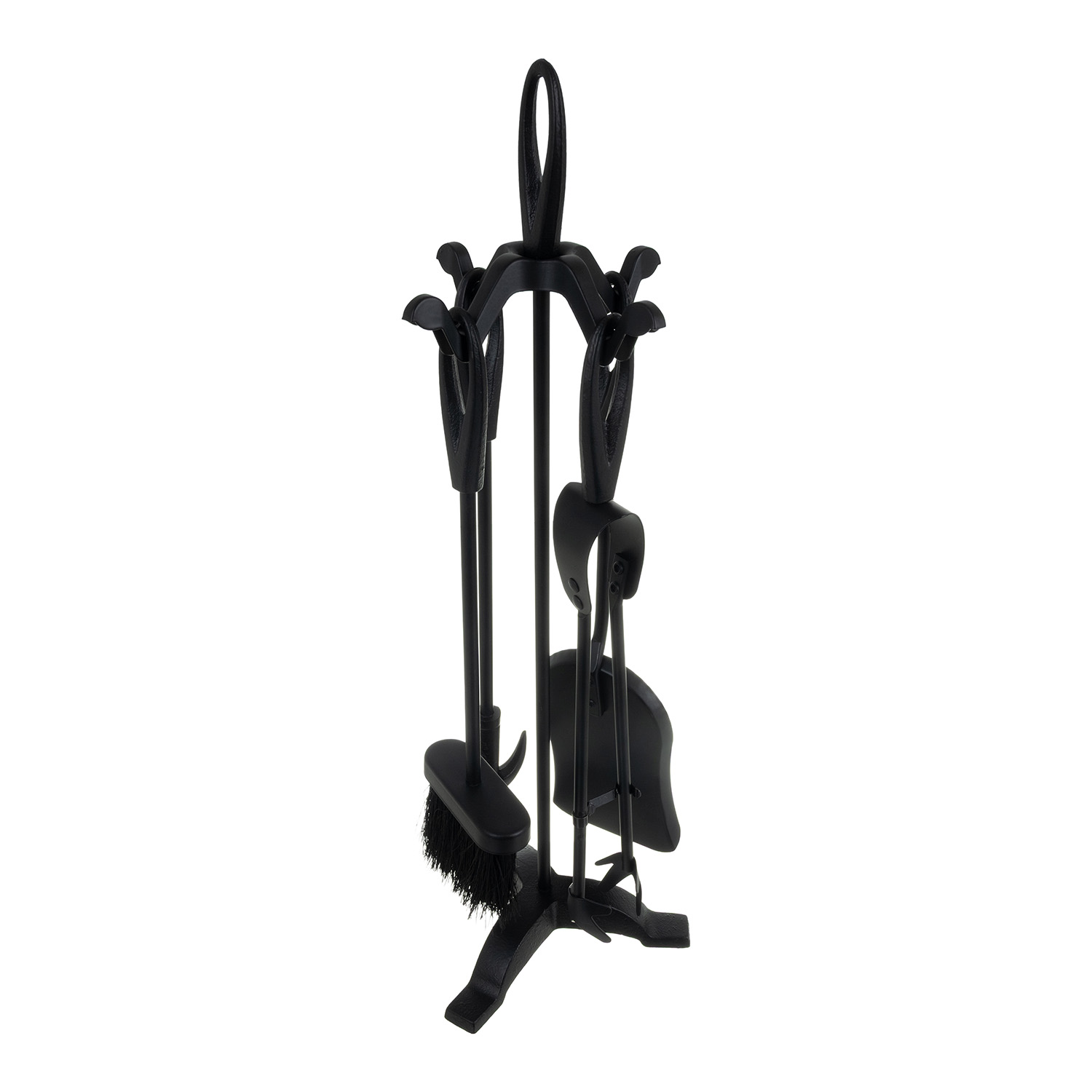 - Stabiilne ja ohutu: Kaminatarvikute alus on varustatud kolme rauast jalaga, tänu millele püsib kogu komplekt stabiilsena ja ohutuna ka intensiivse kasutamise korral.