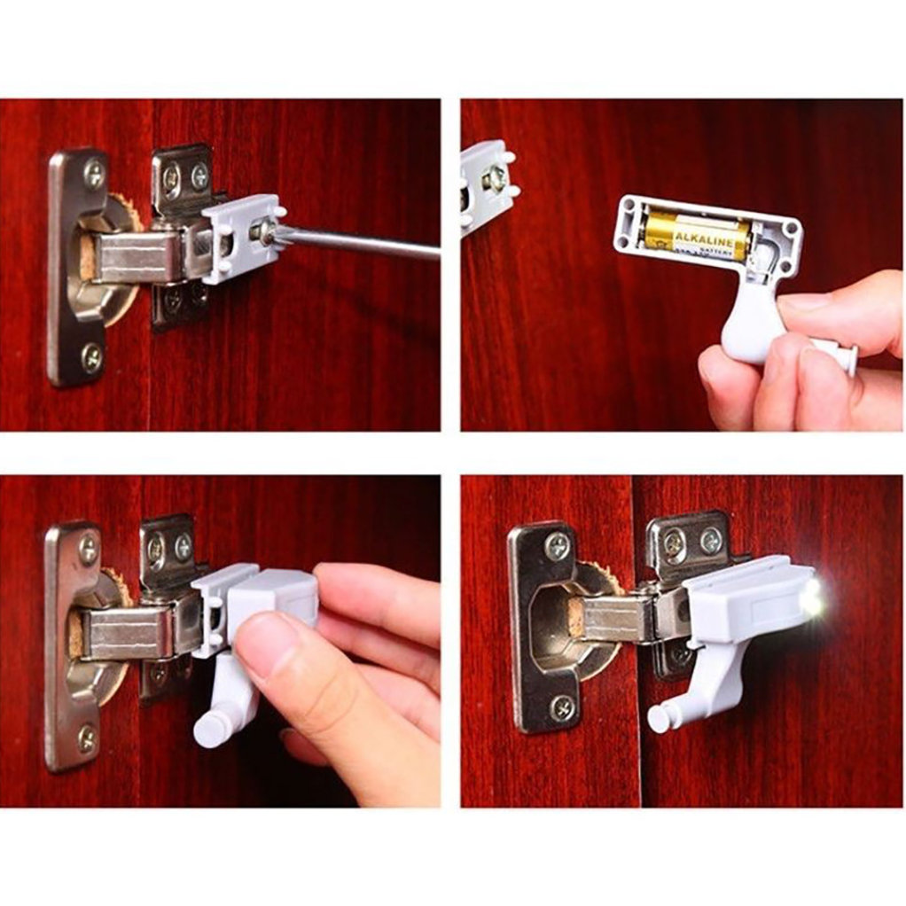 * Valgusti kinnitatakse uksehinge külge. Kinnitamiseks on kaasas spetsiaalne kruvi, mis valgustit hinge küljes hoiab. Paigaldamine on väga lihtne ja sellega saab hakkama igaüks.