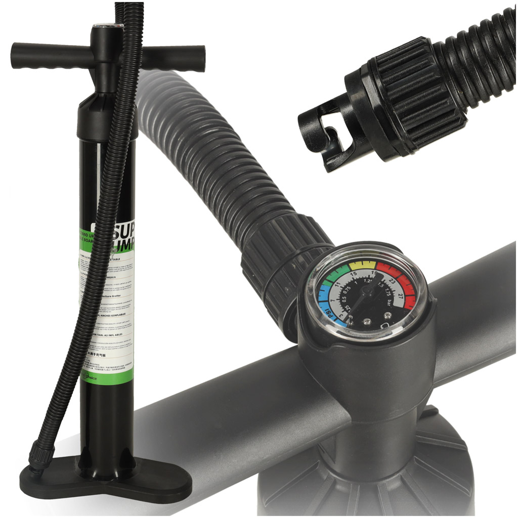 Käsipump SUP laudadele on hädavajalik tööriist, mis võimaldab kiirelt ja tõhusalt täispuhuda SUP laudu ja teisi täispuhutavaid tooteid. Tänu sisseehitatud manomeetrile saad täpselt jälgida rõhku, tagades ideaalse täispuhumise. Kompaktne suurus ja mugav käepide muudavad selle kasutamise lihtsaks ja mugavaks.