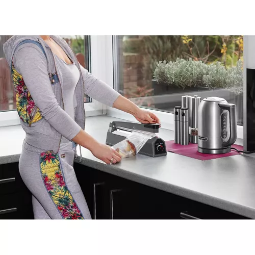 Fooliumkeevitaja aitab sul pakendid kiiresti ja hermeetiliselt sulgeda, et toit püsiks kauem värske ning oleks kaitstud niiskuse, lõhnade ja õhu eest. Seade sobib nii kodukööki kui ka kodusesse tööruumi, kui vajad tugevat ja ühtlast sulgemisjoont. Lihtne ajaseadistus ja mugav hoob teevad kasutamise eriti kiireks.