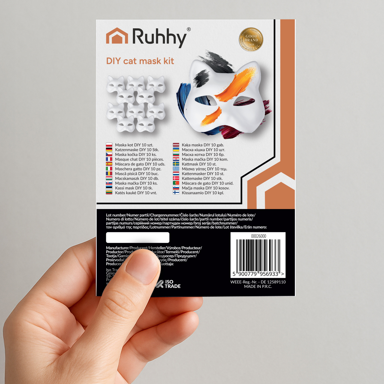 * Valmistatud kvaliteetsest paberimassist ning paindlikest sünteetilistest kiududest, mis taluvad värvimist ja kaunistamist ilma kuju kaotamata. Maskid jäävad ka pärast dekoreerimist ilusaks ja tugevaks.