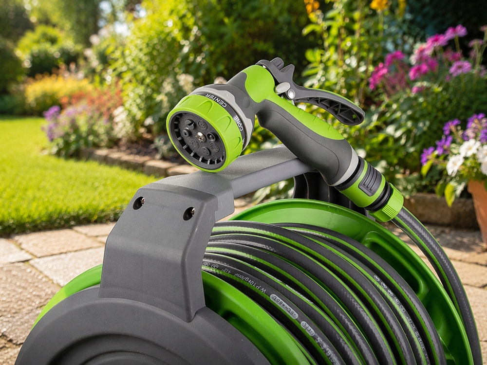 - Universaalne kiirliitmikuga ühendus – sobib standardse aiavoolikuga.