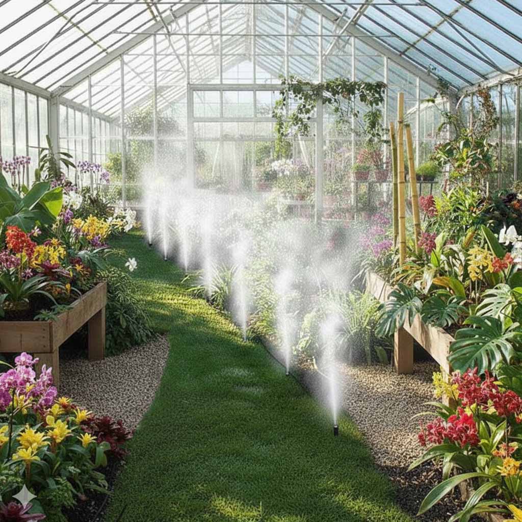 Reguleeritav veevool – pihusteid saab reguleerida vastavalt vajadusele, et valida udu, peenem pihustus või tugevam veejuga.