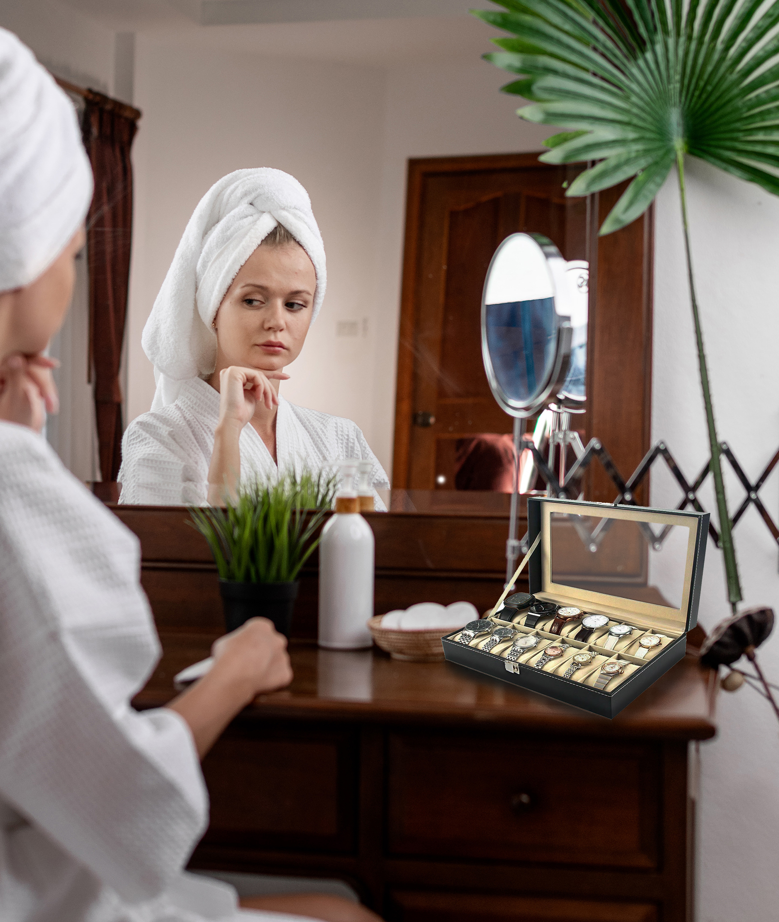 Hoia oma kellad ja ehted korras, kaitstult ja alati käepärast. Elegantne 12 sektsiooniga karp sobib nii hoiustamiseks kui ka kauniks eksponeerimiseks tänu läbipaistvale kaanele. Pehme sisemus ja eemaldatavad padjad aitavad vältida kriimustusi ning muudavad karbi mitmekülgseks ka käevõrude, sõrmuste ja kõrvarõngaste jaoks.