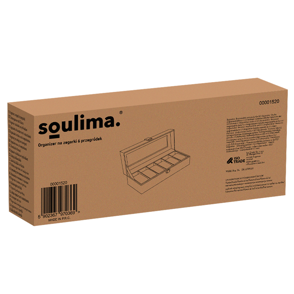 - 6 eraldi sektsiooni – kuus pehmendatud lahtrit hoiavad kellad korrastatult ning aitavad vältida nende omavahelist hõõrdumist. Sobib ideaalselt ka käevõrude ja muu ehtekollektsiooni hoiustamiseks.