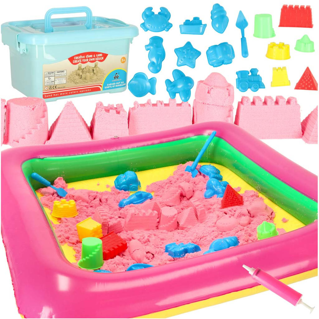 * Suur komplekt, kus on kõik vajalik lõbusaks liivamänguks – 2kg liiva, mängualus+pump, 16 erinevat vormi ja hoiukarp