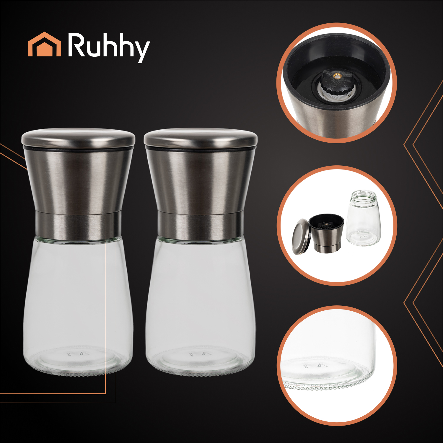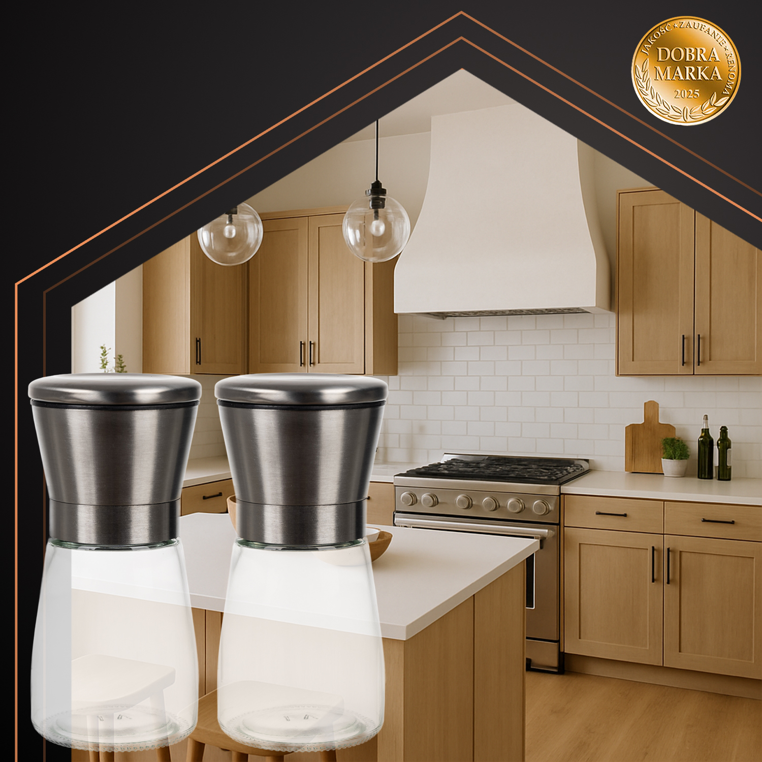 * Elegantsed ja mugavad klaasist veskid värskelt jahvatatud maitseainete nautimiseks.