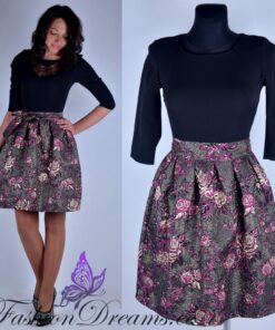 * Seelikuosa tugevamast vormi hoidvast materjalist, kaunistatud tekstuurse kullasäralise lillemustriga. All vooder.