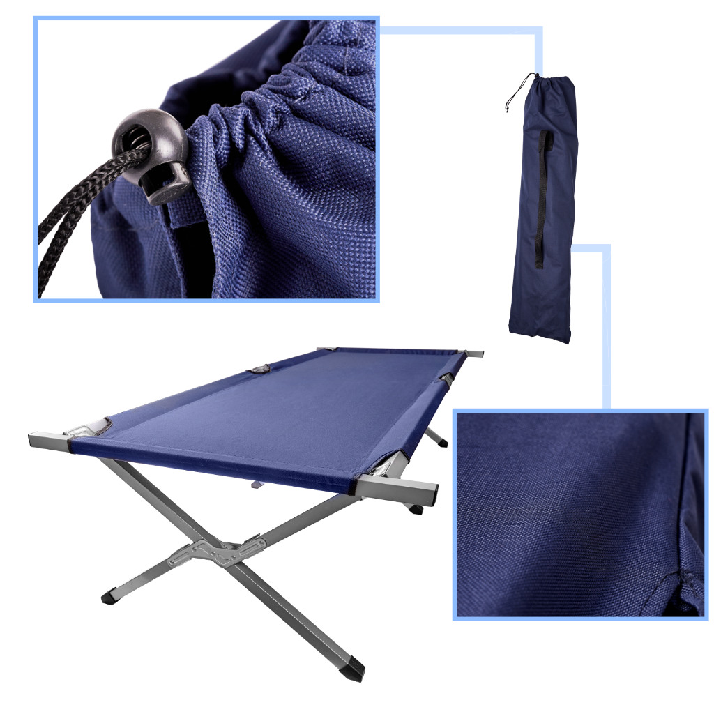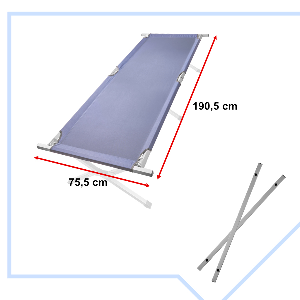 - Tehnilised andmed – mõõdud 190,5 × 70,5 cm; kõrgus 42 cm; värvus tumesinine; kokkupandult 96 × 18 × 14 cm; komplektis kandekott sangaga.