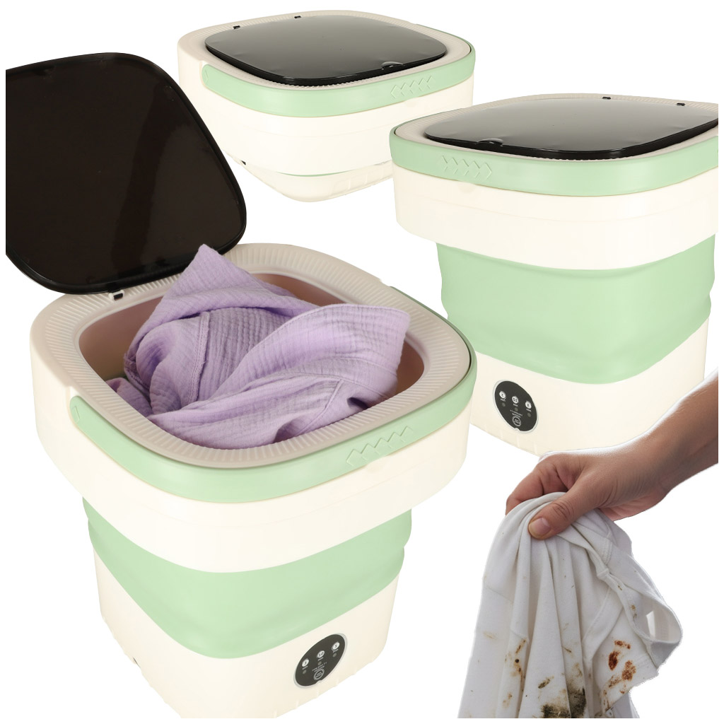 Unusta käsipesu matkadel, suvilas või ühiselamus – see kokkupandav mini pesumasin teeb töö sinu eest. Kompaktne ja kerge seade mahub hõlpsalt autosse, kohvrisse või kappi ning on alati valmis kiireks pesutsükliks. Vali sobiv programm, lisa vesi ja naudi puhtaid riideid ilma vaevata.