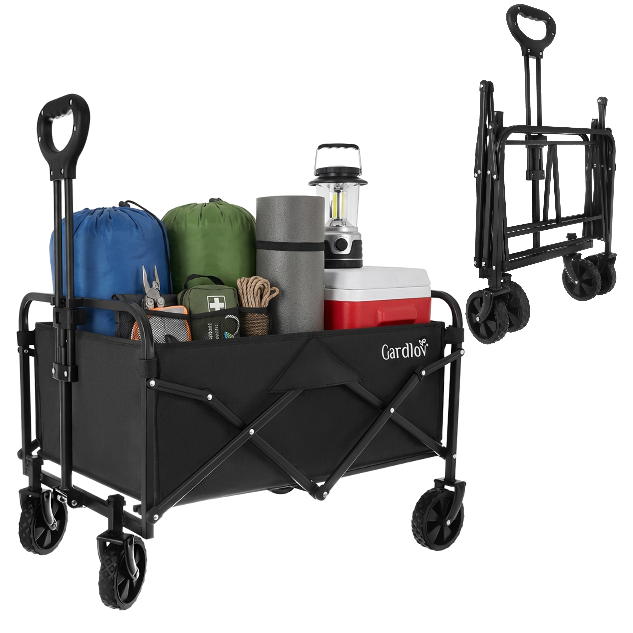 Praktiline ja vastupidav kokkupandav transpordikäru muudab raskete esemete transportimise lihtsaks nii aias, suvilas kui ka igapäevatoimetustes. 90-liitrine mahutavus ja kuni 100 kg kandevõime võimaldavad vedada tööriistu, mulda, taimi, küttepuid, matkatarbeid või poekotte ilma selga koormamata.
