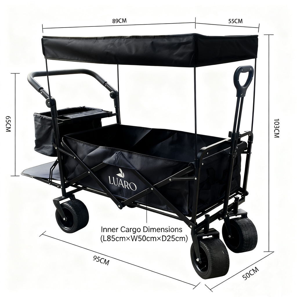 Kokkupandav turismi- ja transpordikäru on praktiline abivahend asjade mugavaks transportimiseks reisidel, rannas, matkadel, aias või linnas. Tugev konstruktsioon, suured maastikurattad ja reguleeritavad käepidemed võimaldavad käru kergesti juhtida erinevatel pindadel. Praktiline varikatus kaitseb sisu päikese ja kerge vihma eest ning lisakorv aitab hoida vajalikud esemed käeulatuses.