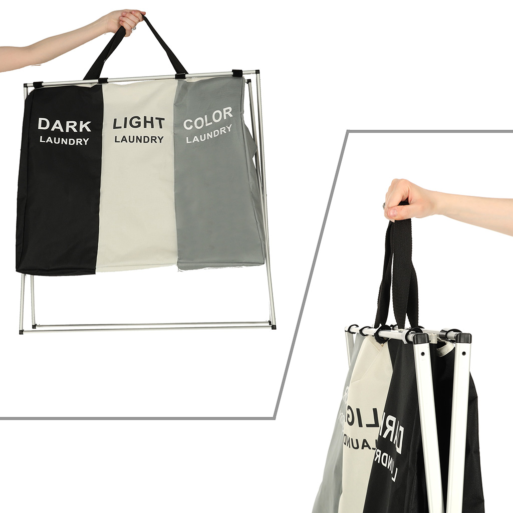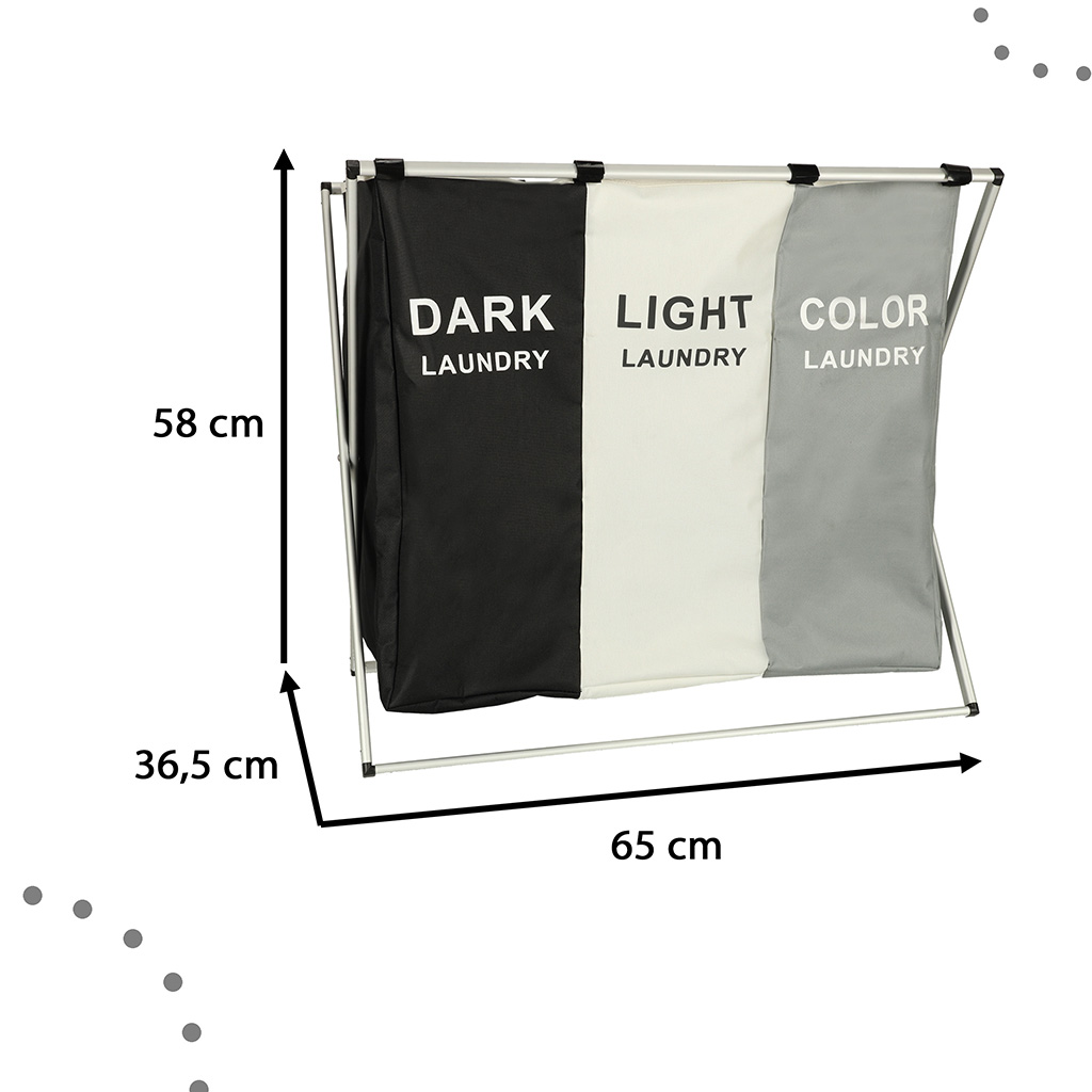 See kolmeosaline pesukorv on ideaalne lahendus neile, kes soovivad oma pesu mugavalt jaotada. Iga osa on mõeldud erineva pesu jaoks, aidates hoida korda ja lihtsustada pesupesemist.