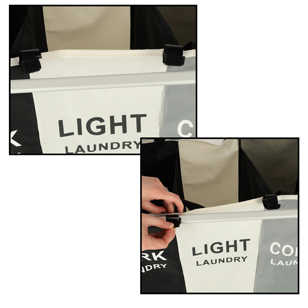 - Täiuslik jaotus: Kolm eraldi kambrikest võimaldavad sorteerida musta, valge ja värvilise pesu, muutes pesupesemise lihtsamaks ja tõhusamaks.