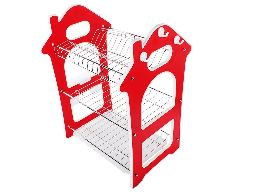 Kolmetasandiline nõudekuivatusrest on praktiline lahendus igasse kööki. See aitab hoida nõusid organiseeritult ja tagab, et vesi ei tilgu lauale, kaitstes seeläbi mööblit.