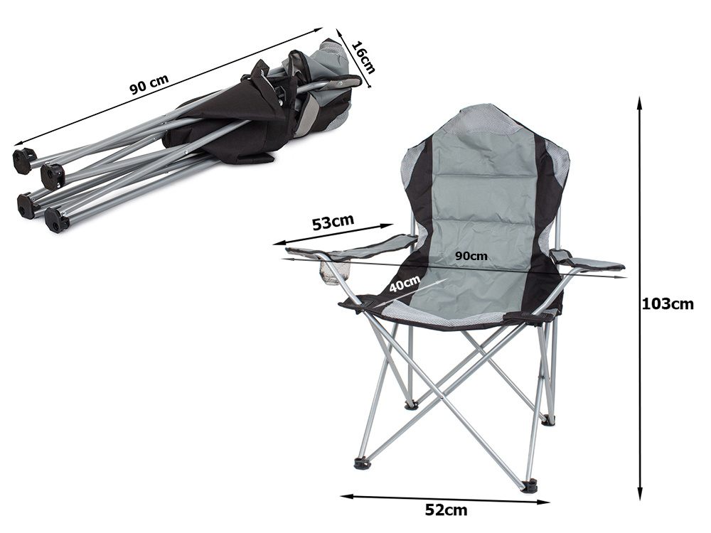 Tooli mõõtmed: kõrgus 103 cm, laius 90 cm, sügavus 47 cm. Kokkupanduna: kõrgus 100 cm, laius 25 cm.