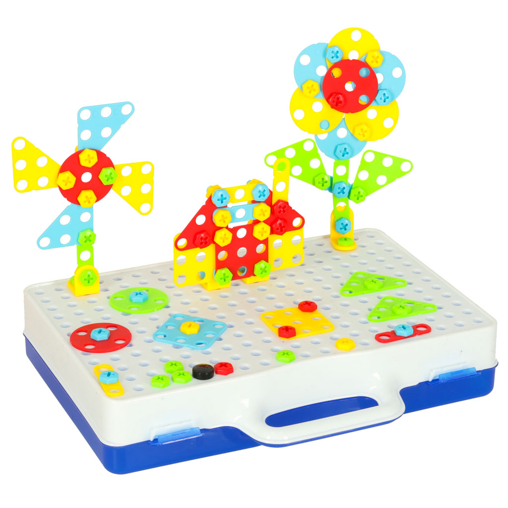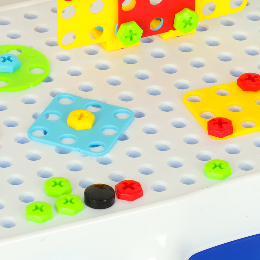- Suur komplek: Komplektis 151 osa! Laps saab luua lõputult erinevaid konstruktsioone ja deailidest kokku sättida erinevaid pilte ning need siis kruvidega kinnitada
