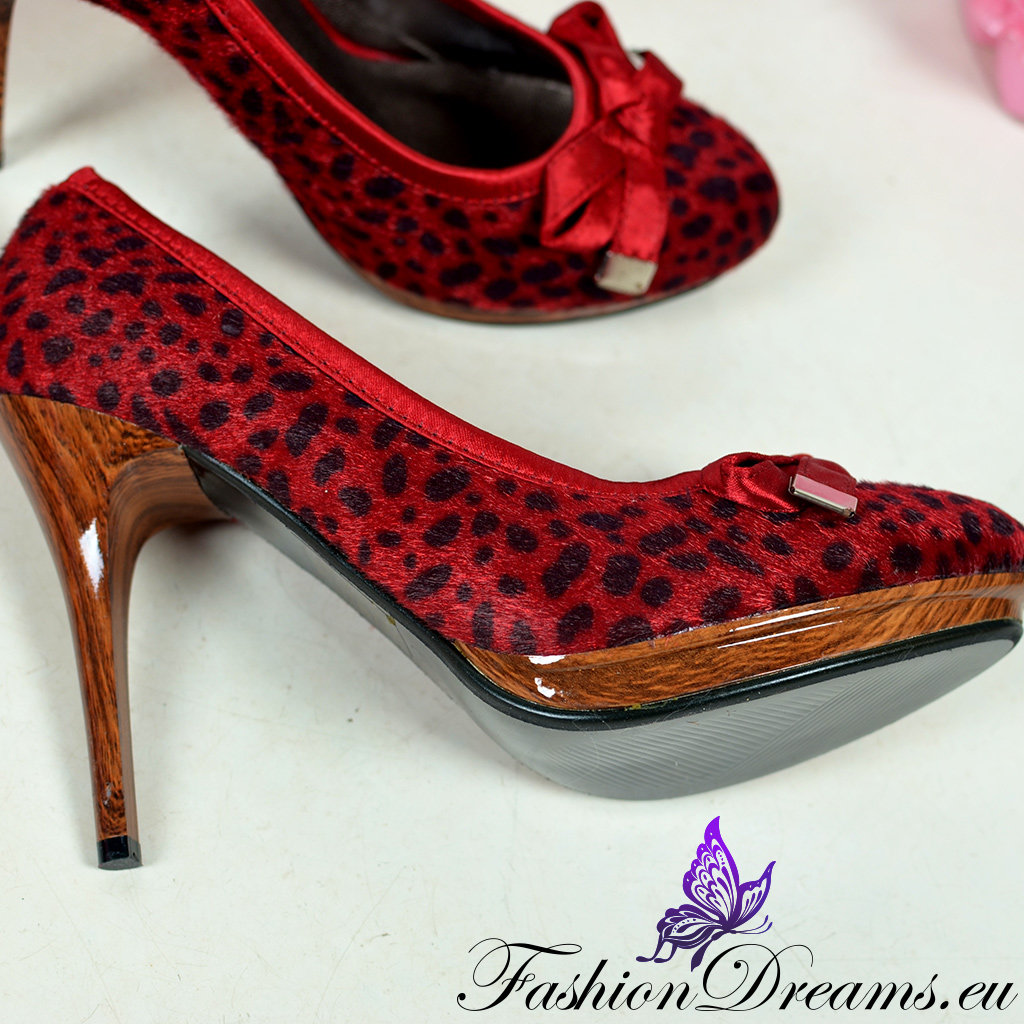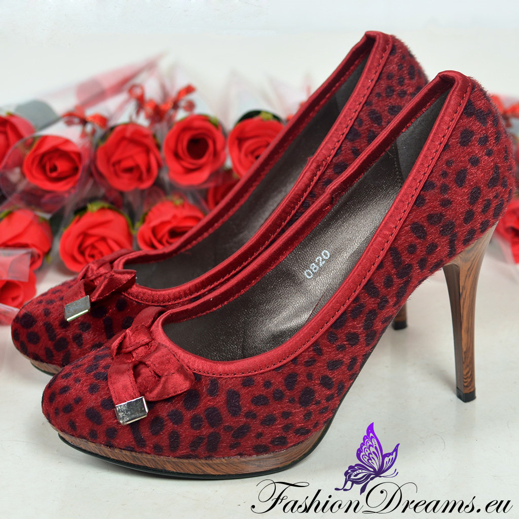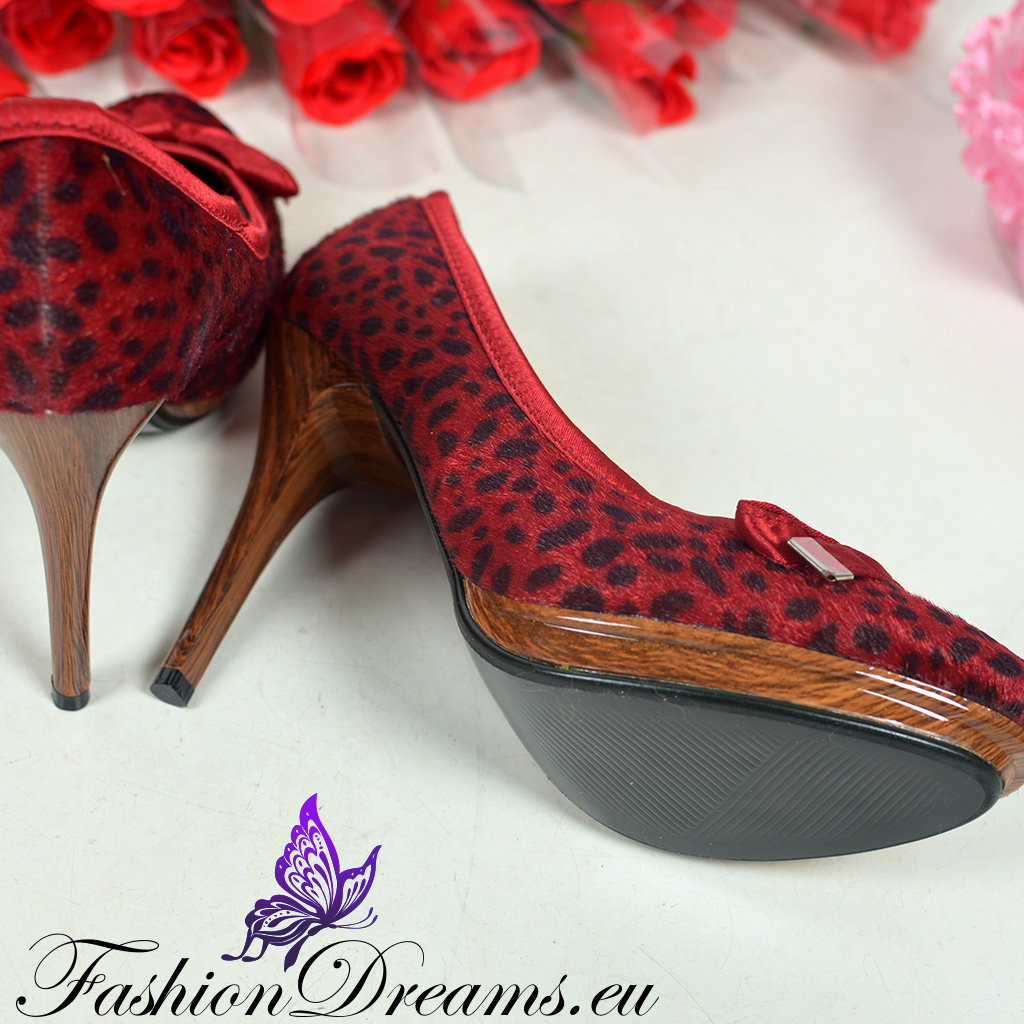 Pehmest tumepunasest materjalist, konts ja platvormosa puit-dekooriga.