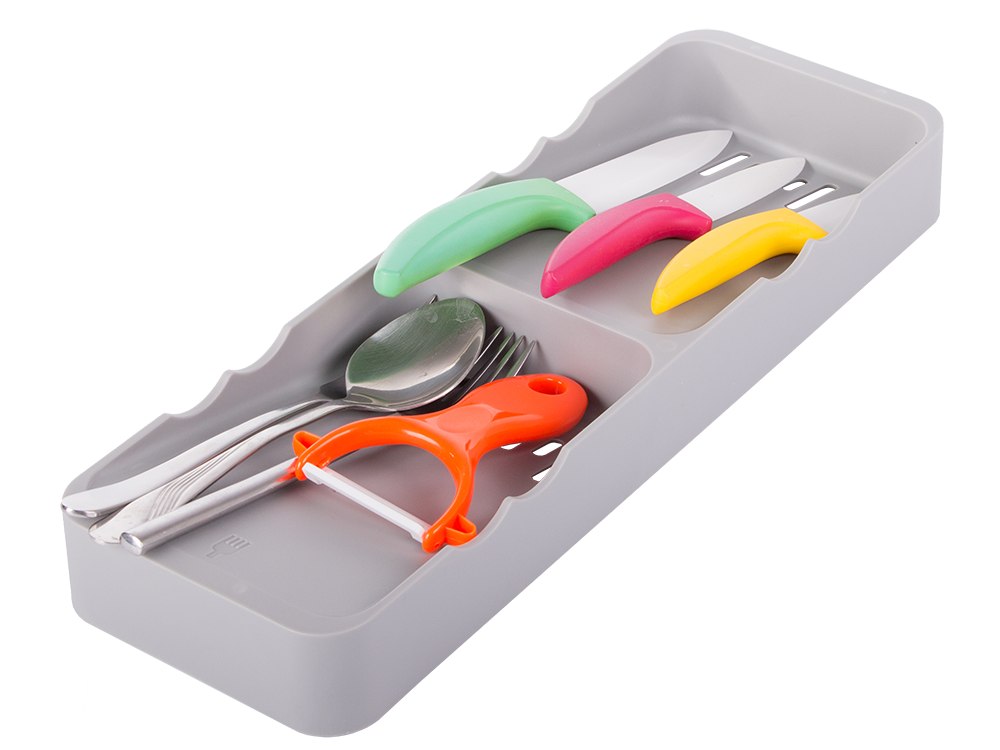 Komplekt sisaldab: uus köögiriistade korraldaja sahtlisse, originaalpakendis.