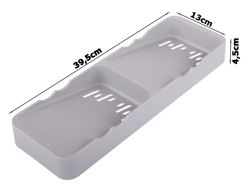 Mõõdud: laius 13 cm, sügavus 39,5 cm, kõrgus 4,5 cm.