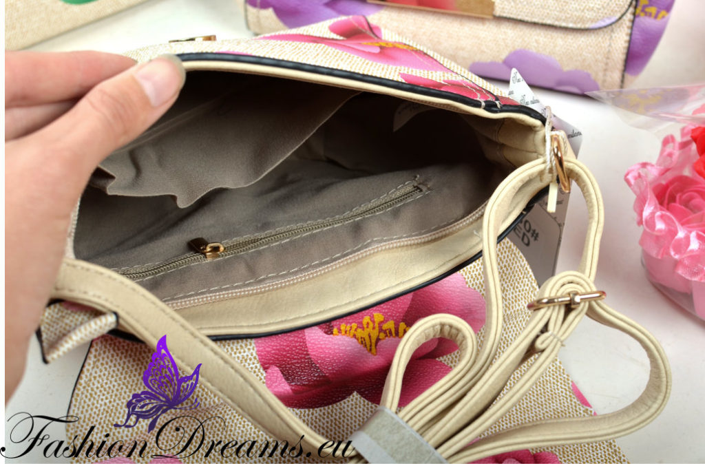 Sees 1 suurem ja 1 väiksem lahter ning väike lukuga taskuke. Suurem lukuga tasku on ka koti tagumisel küljel