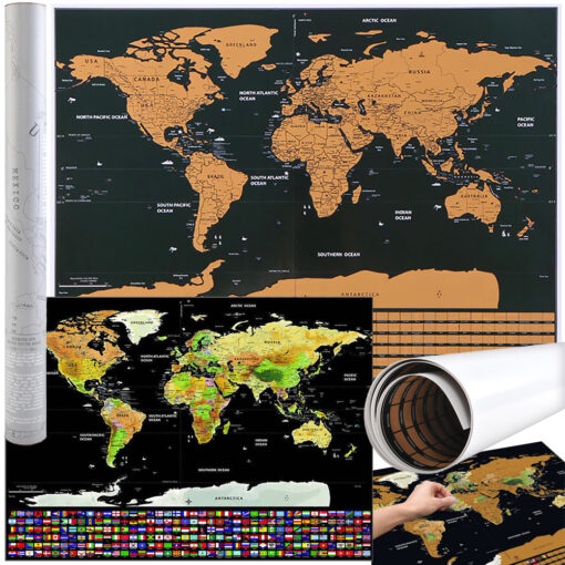 * Dekoratiivne maailmakaart, kust saab lahti kraapida riigid, mida oled külastanud.