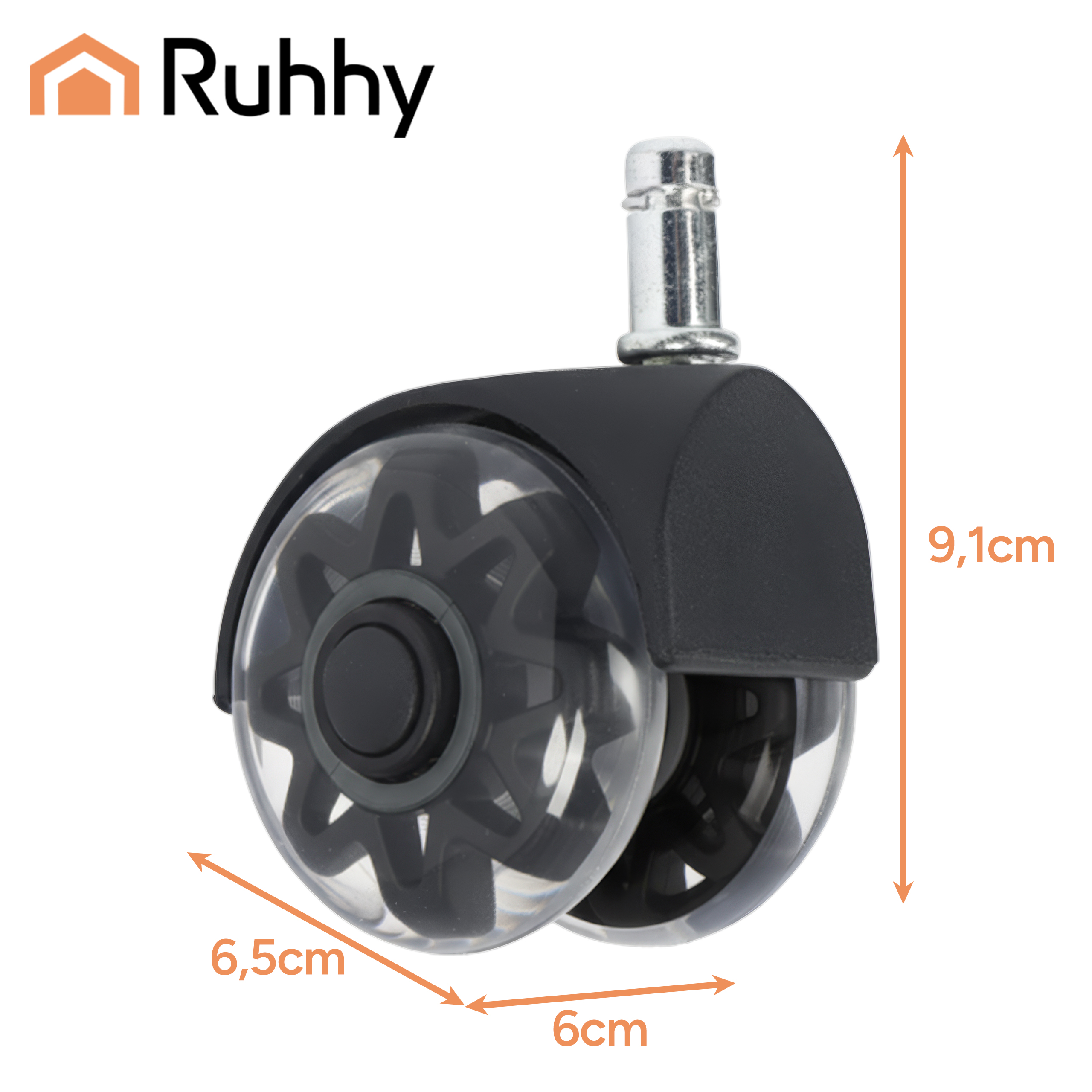 Kvaliteetsed Ruhhy kontoritooli rattad tagavad sujuva, vaikse ja turvalise liikumise igal pinnal: parketil, paneelidel, plaatidel või vaibal. Tänu teraslaagritele ja pehmele PU-kummist pinnale liigub tool kergelt, ilma põrandat kahjustamata. Paigaldus võtab alla minuti – lihtsalt eemalda vanad rattad ja klõpsa uued asemele!