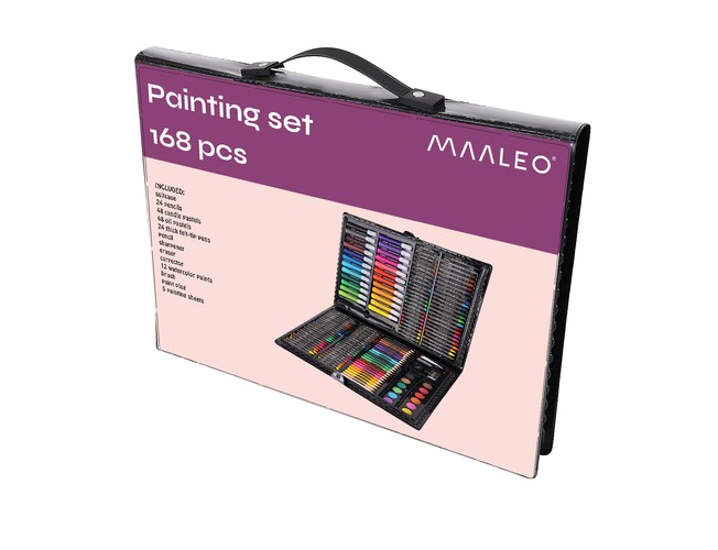 * Suur 168-osaline komplekt, kus on kõik, mida joonistamiseks ja värvimiseks vaja