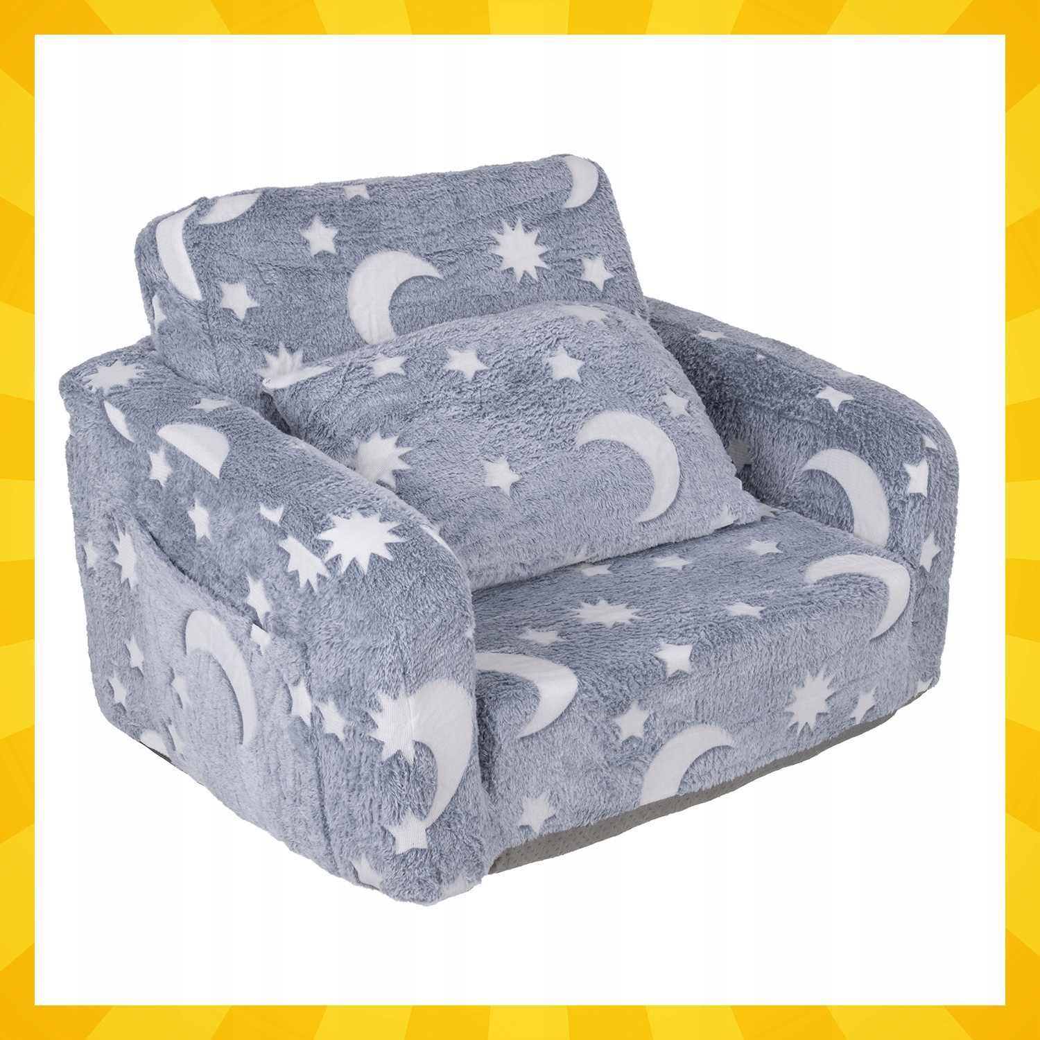 Pehme ja mõnus plüüs – välismaterjal on nahasõbralik ja väga pehme, täidis tihedast PU-vahust, mis toetab lapse selga ja tagab mugava istumise.
