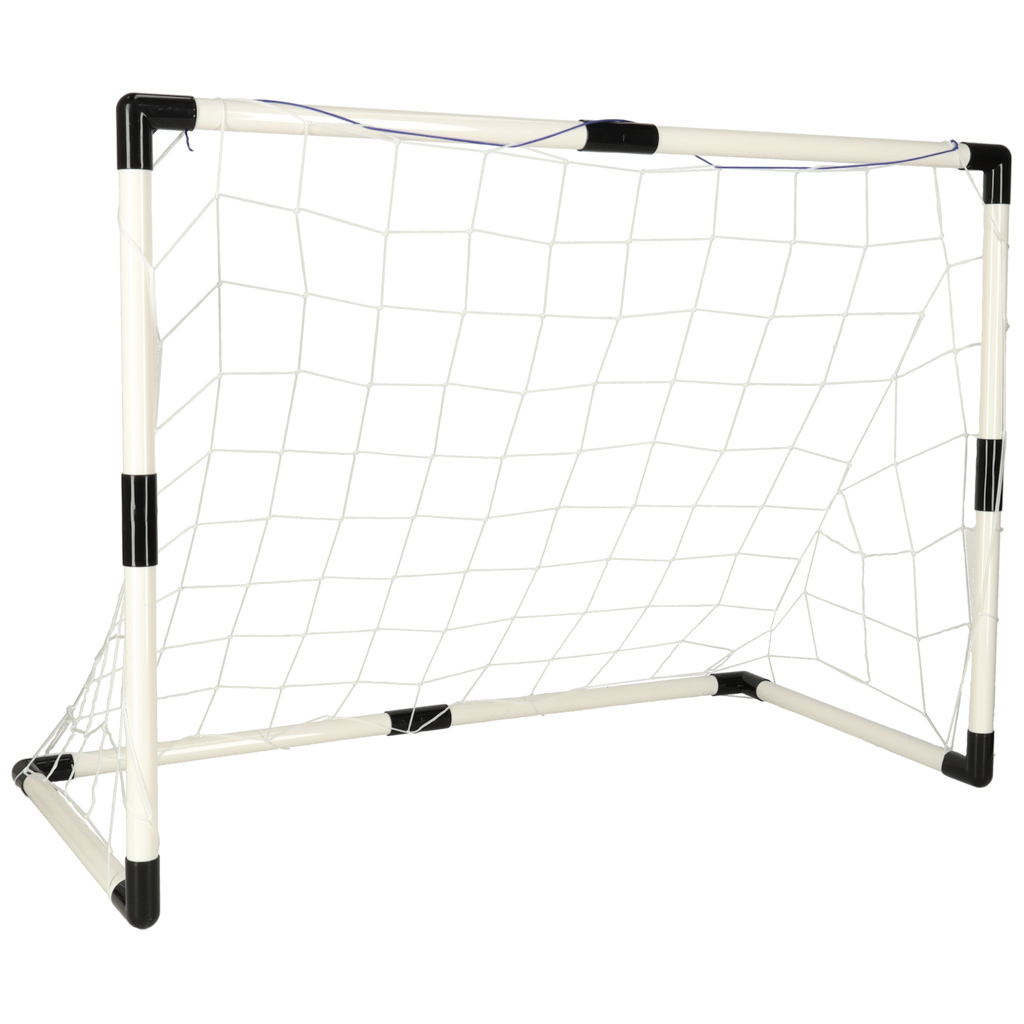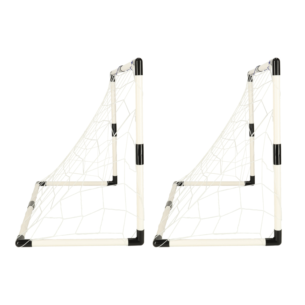 Komplekti kuuluvad kaks kokkupandavat jalgpalliväravat, kaks palli ja pump, mis tagab, et kõik vajalik on kohe mänguks valmis.
