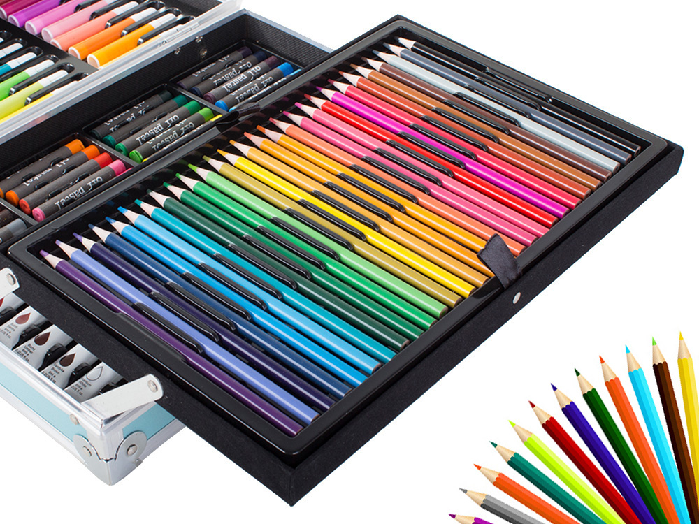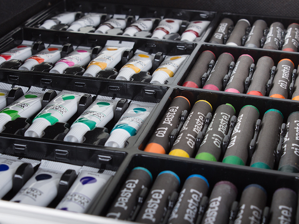 - 145 osa – sisaldab suurt valikut värvipliiatseid, markereid, õlipastelle ja akvarelle.