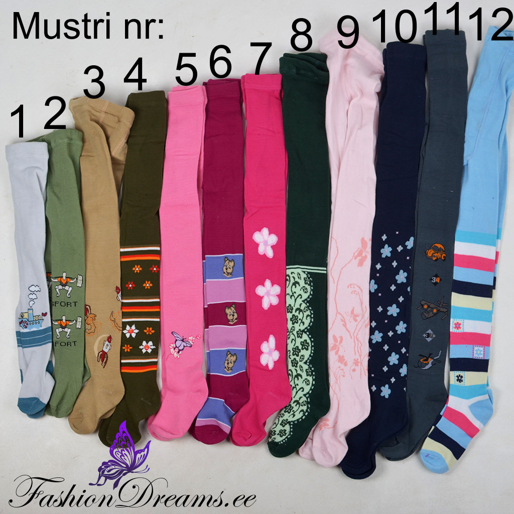 | Muster (nr vaata viimselt pildilt) | nr 1 (laevaga), nr 2 (sportlastega), nr 3 (rakettidega), nr 4 (roheline lilledega), nr 5 (liblikatega), nr 6 (triibuline karudega), nr 7 (roosa lilledega), nr 8 (roheline, lillelise mustriga), nr 9 (heleroosa lilledega), nr 10 (tumesinine lilledega), nr 11 (sõidukitega), nr12 (triibuline) |