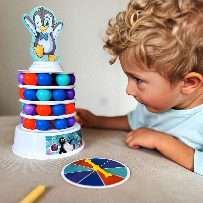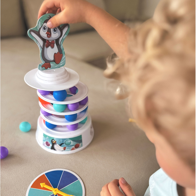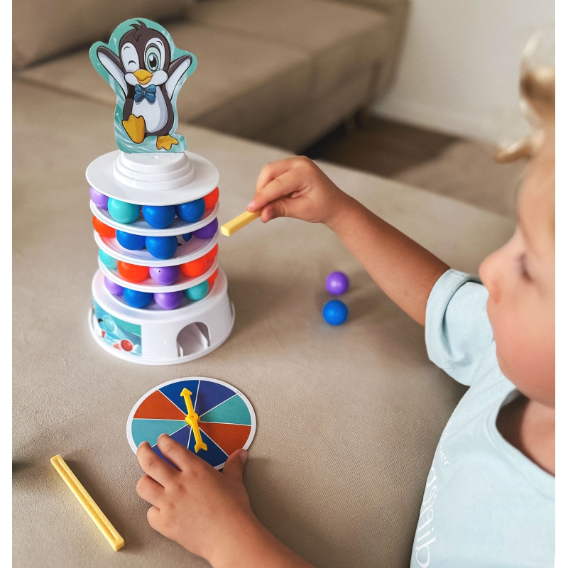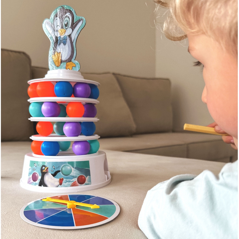 * Torni igale tasandile pannakse suvalises järjestuses 9 värvilist palli. Mängijad keerutavad kordamööda kettal noolekest ning peavad pulkade abil eemaldama vastavat värvi palli ükskõik milliselt tasandilt, ilma et pingviin torni otsast alla kukuks. Iga käiguga muutub torn järjest ebastabiilsemaks ning mäng pingelisemaks.