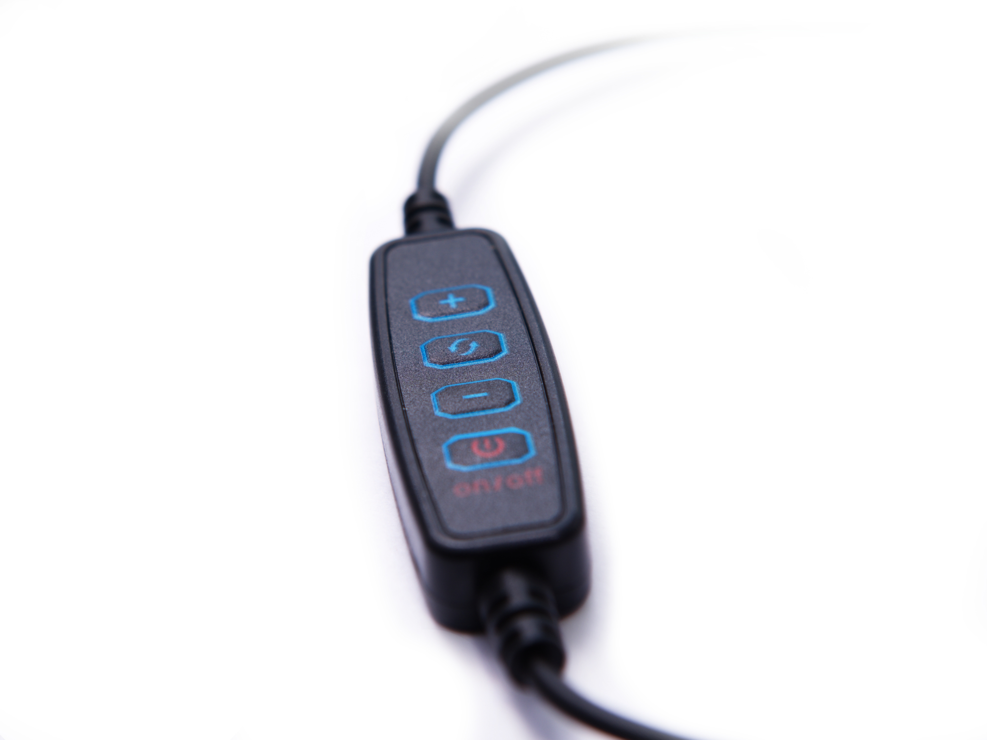- Kolm valgustusrežiimi – Valikus on külm (5800K), neutraalne (4000K) ja soe (3000K) valgus, mille intensiivsust saab muuta juhtme küljes oleva regulaatori abil.