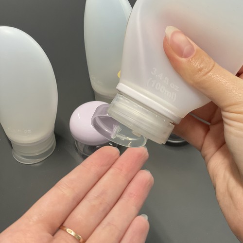 Täida pudelid ja purgid oma lemmiktoodetega (nt šampoon, palsam, dušigeel, kreem või losjoon) ning aseta kõik läbipaistvasse lukuga kotti. Sulge kott kindlalt, et sisu püsiks transpordil paigal.