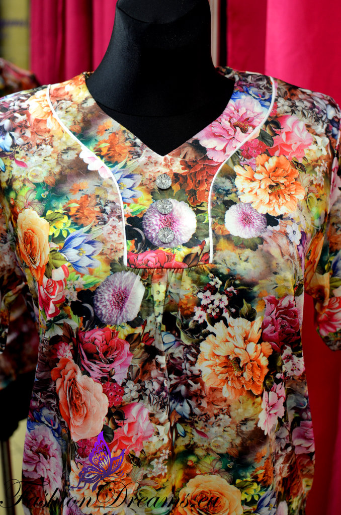 Materjal hea venivusega – tabelis esimene mõõt vabalt, teine kergelt venitades. Kui soovid, et pluus ei jääks seljas ümber, siis vali pigem esimese mõõdu järgi 🙂